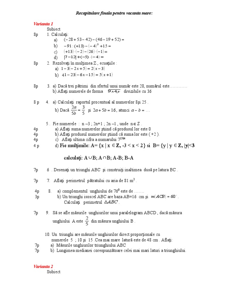 Doc Tema De Vacanta Clasa A Vi A C Stefania Dinca Academia Edu