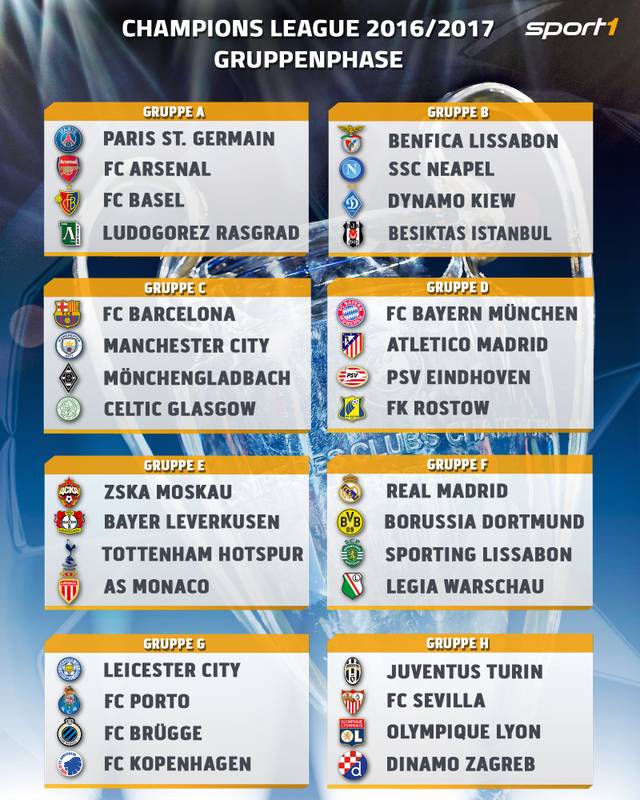 Fussball Champions League Auslosung Gruppenphase 2016 17 Infographic
