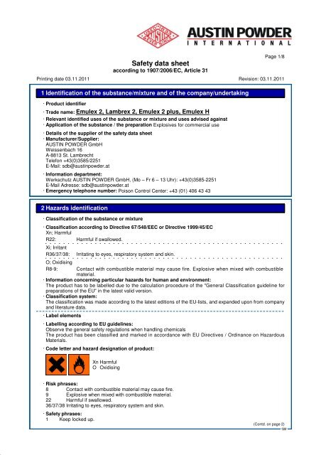 Emulex 2 Emulex 2 Plus Emulex H Lambrex Austin Powder Gmbh