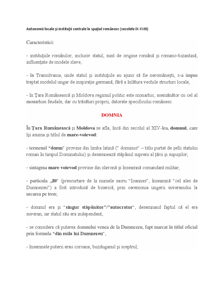 Autonomii Locale și Instituții Centrale In Spațiul Romanesc Sec Ix Xviii Partea 3 Istorie Admitere Academia De Politie