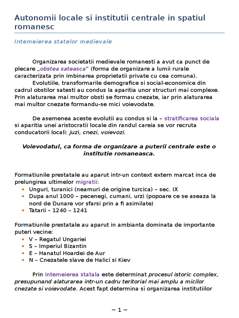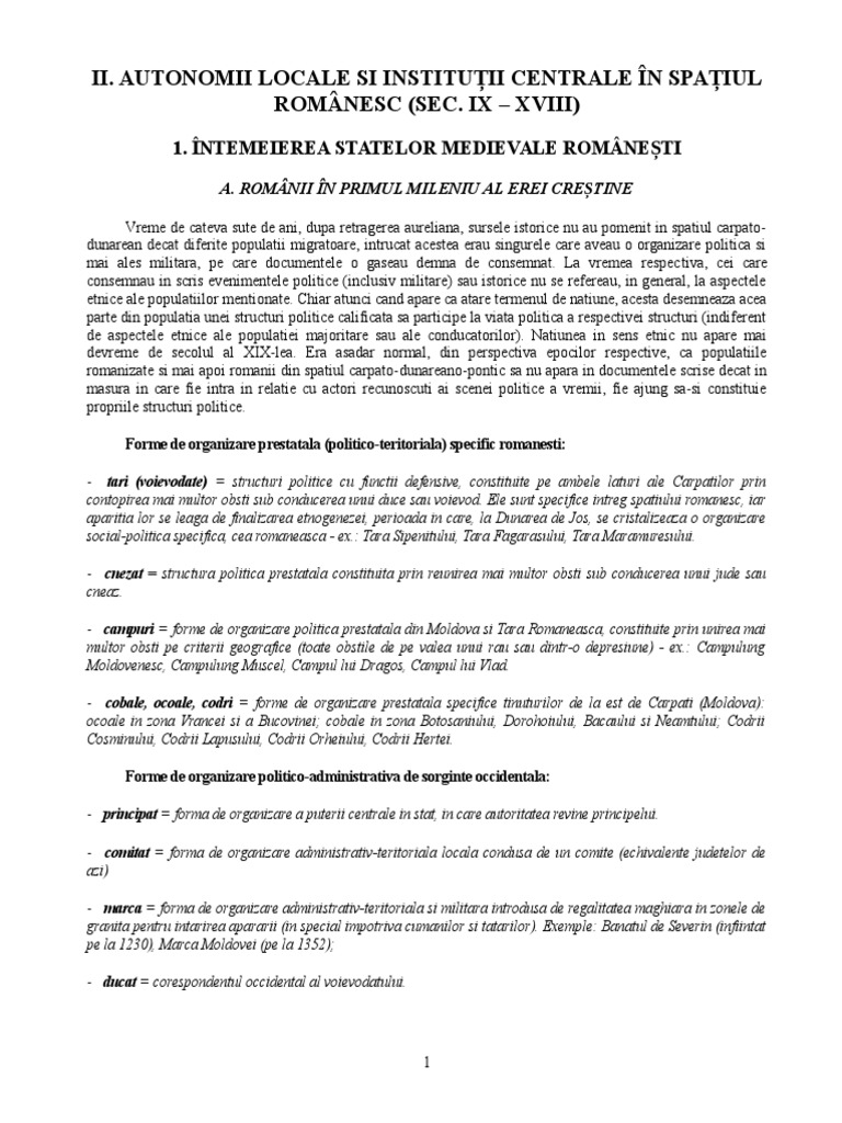 Eseu Despre Autonomii Locale și Instituții Centrale Din Spațiul Romanesc In Secolele Al Ix Lea Al Xvi Lea Liceunet Ro