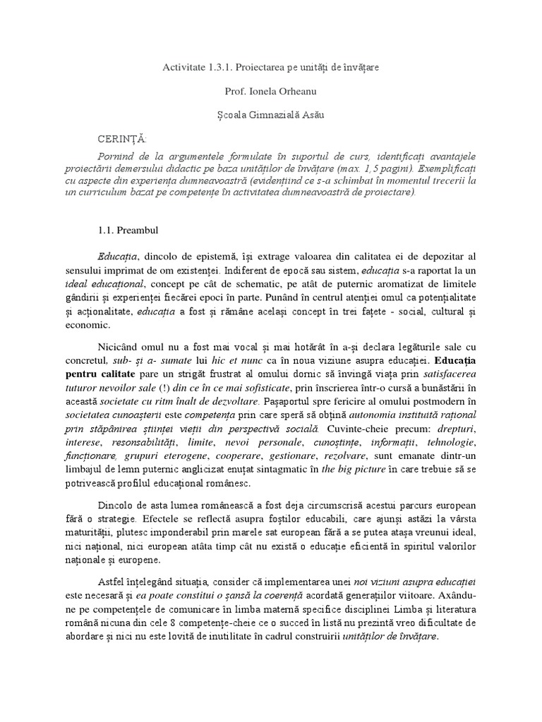 Tema 1 3 1 3 Avantajele Proiectarii Demersului Didactic Pe Baza Pui Docx