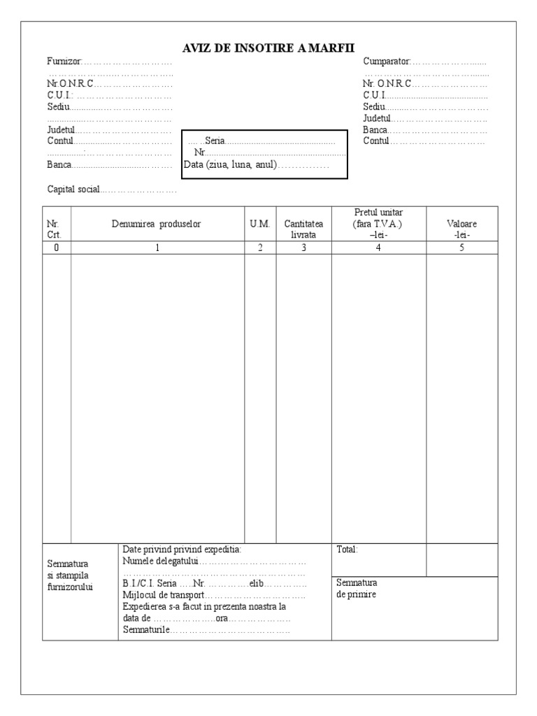 Aviz De Insotire A Marfii Model Word Pdf Sau Excel