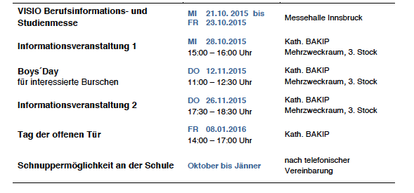 Bafep Kettenbrucke Innsbruck Es Ist Bald Soweit Tag Der Offenen Tur 08 Janner 2016 Bafep Kettenbrucke Innsbruck