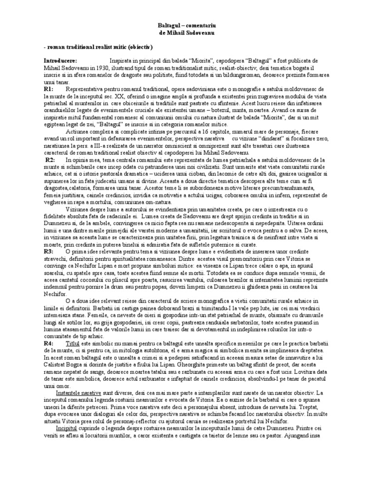 Referat Baltagul De Mihail Sadoveanu Argumentare Si Caracterizare 337958 Graduo